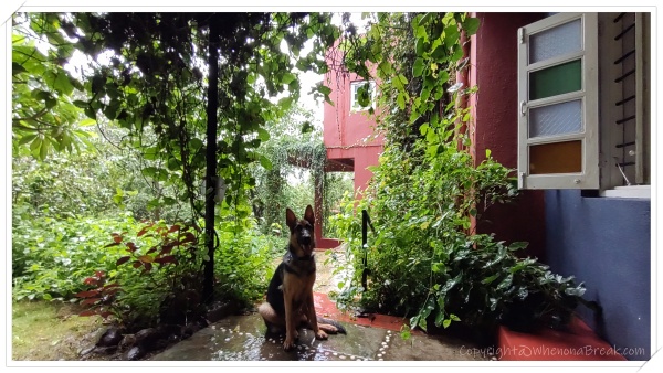 Vadivali lake is the centerpiece of the whole show and a trail circumventing the garden took us to it where we spent a good amount of time chilling late afternoon. Talk of the lake, Jiraiya had the time of his life jumping and swimming in it. In-fact he was so much at ease during the whole stay. Running around, making friends, exploring new smells and pathways and experiencing new terrains and surfaces – we could literally feel his happiness trotting around and finding his trails around the building and gardens – freely! By end of our trip he knew his way around the whole property and was enjoying his time off the leash!!