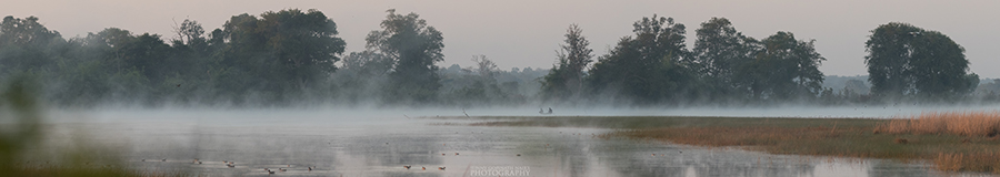 The forest in the early morning mist looks amazing. Some of the common trees found in the jungle are bamboo which covers over 70 percent of the area and the rest is teak & crocodile bark along with other species. Grasslands are few but stretch for a kilometer around water bodies.