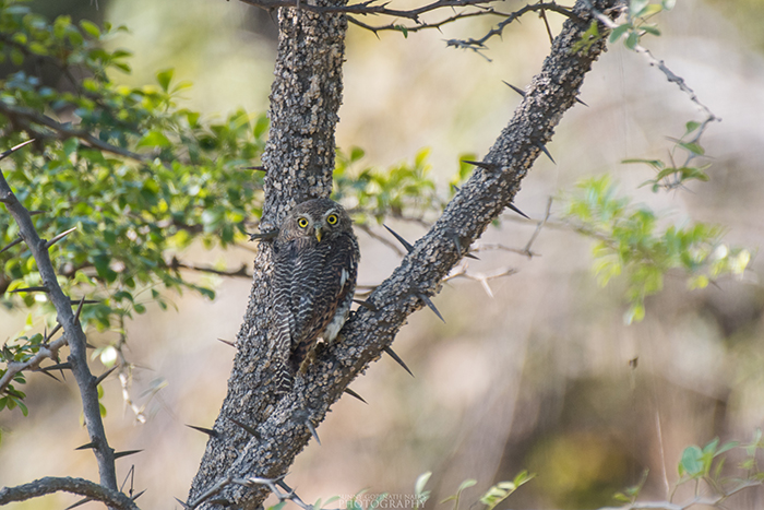 On our way back to the hotel, we also spotted a Jungle Owlet on the side of the road. We stopped the car and got off as slowly as possible to get a good view and also a few photographs too. Lucky for us, the owlet did not feel intimidated by us.