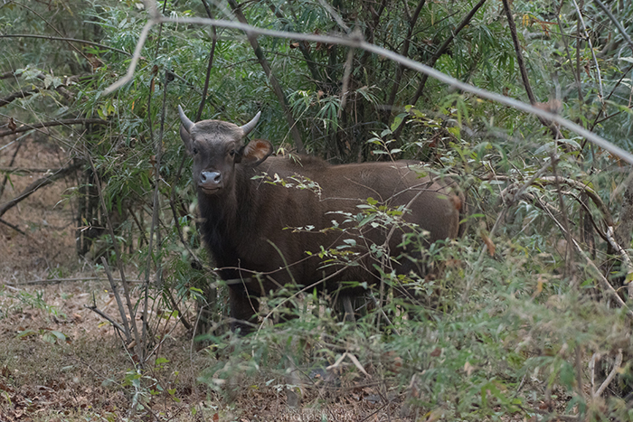 Off-roading from here, we soon entered Tigress Lara’s area. A herd of Gaurs grazing along the road were well camouflaged. Both Dhols and Gaurs were firsters for us and the sighting was exceptional!
