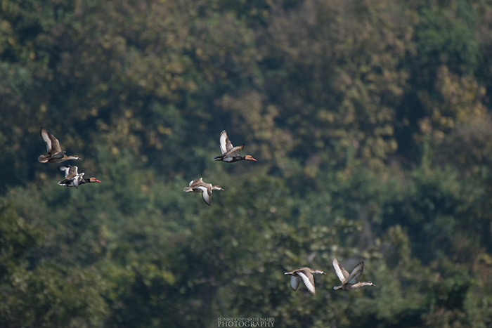 As we began our boat ride, we saw a few common birds like the River Terns, Cormorant, Gulls. We also saw huge flocks of Whistling ducks flying from one spot to another. One of the birds I had not seen before was the Red crested Pochard. Their red bills were shining under the Sun.