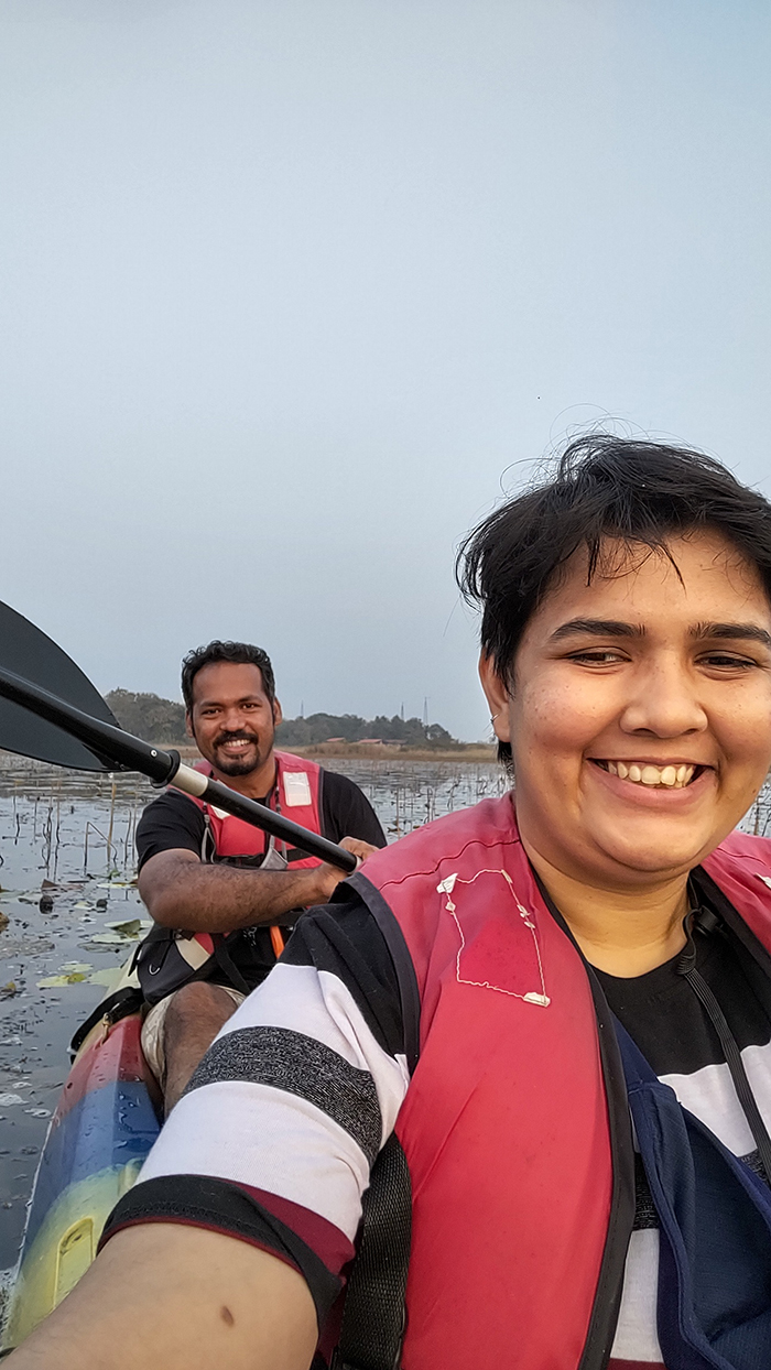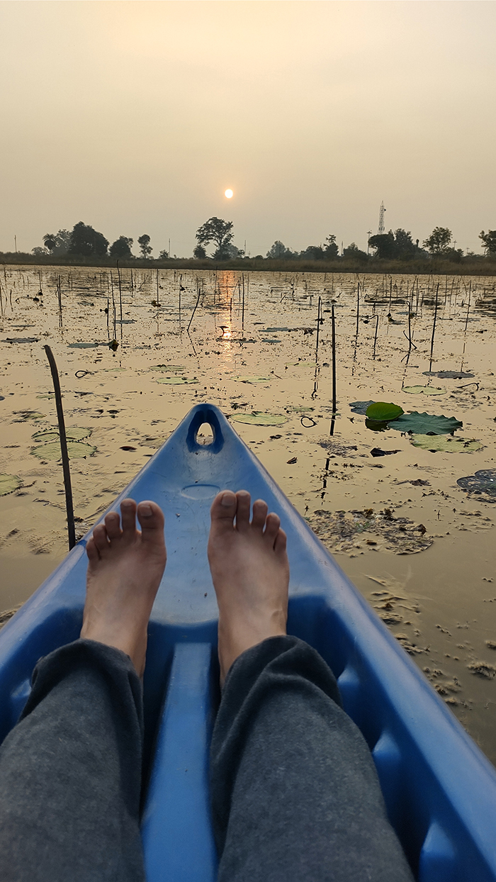 It was late afternoon by the time we freshened after our long journeys and without wasting much time, we headed straight to the Kayaking spot, a 10 min walk . It was truly amazing. We enjoyed the slowing setting sun and got a lot of photos from our phone cameras. But I regret not carrying my DSLR camera along in the water, as there were so many opportunities to photograph those water birds up close.